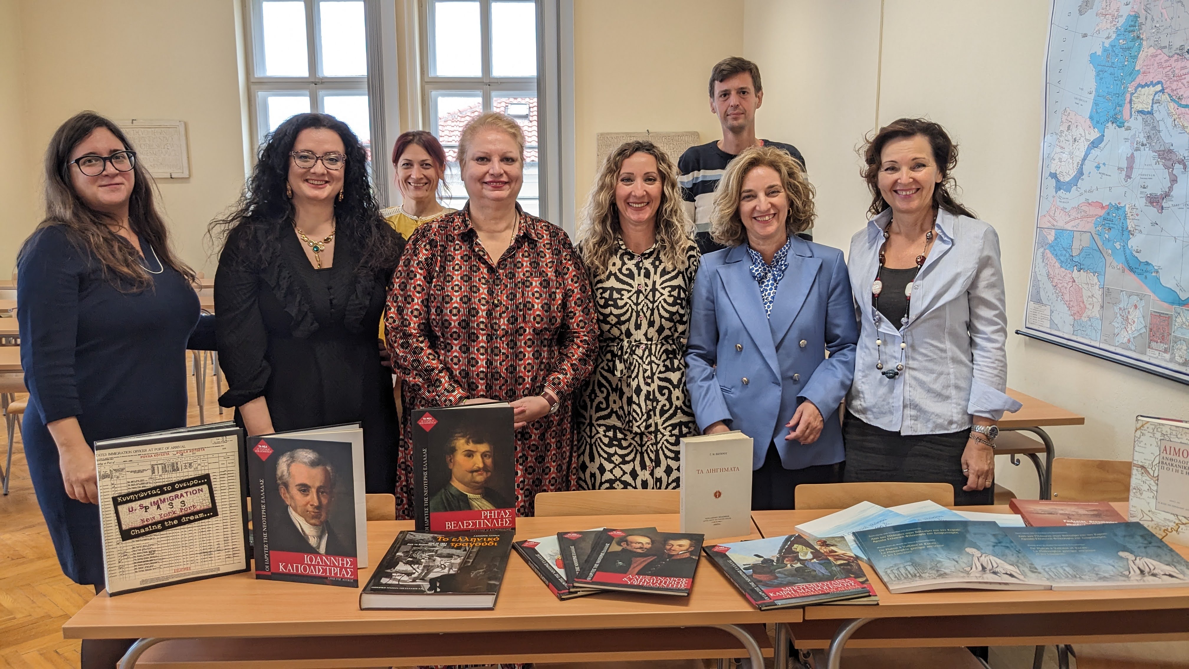Veleposlanica Helenske Republike u Hrvatskoj, Nj. E. Antonia Katzourou i gđa Anastasia Poulakida, kulturni ataše i predstojnica konzularnog ureda, posjetile su 18. i 19. listopada 2023. Sveučilište u Zadru. Nakon sastanka s prorektorima prof. dr. sc. Zvjezdanom Penezićem i prof. dr. sc. Markom Lukićem, na kojem se razgovaralo o produbljivanju međusobnih kulturnih odnosa i popularizaciji grčkog jezika i kulture, gošće su našem Odjelu uručile donaciju knjiga.
