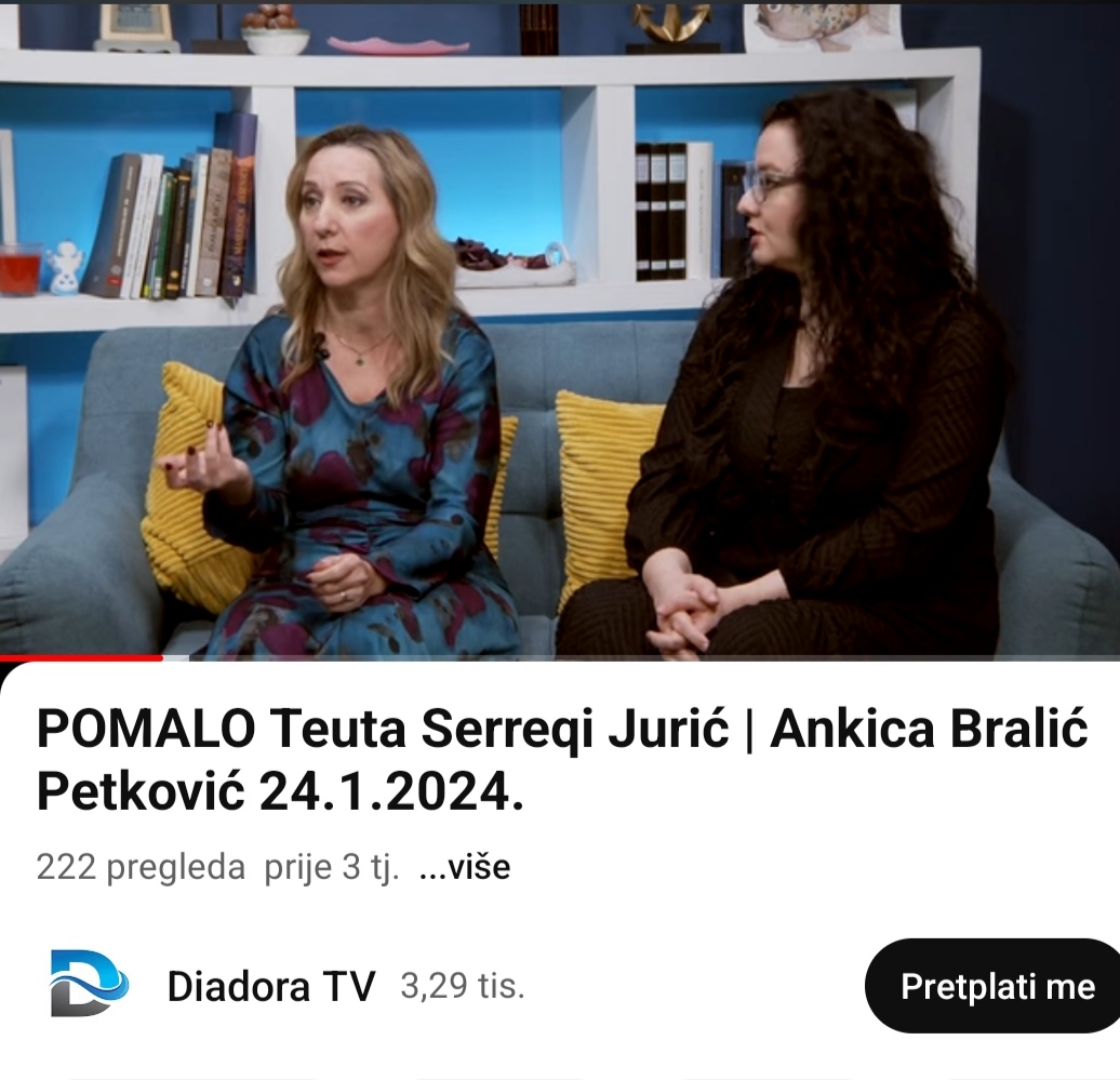 Izv. prof. dr. sc. Teuta Serreqi Jurić, pročelnica Odjela za klasičnu filologiju i doc. dr. sc. Ankica Bralić Petković, zamjenica pročelnice gostovale su 24. siječnja 2024. u emisiji "Pomalo" na Diadora TV-u. Gošće su govorile o povijesti Odjela, studijskim programima, aktivnostima Odjela koje su usmjerene na popularizaciju znanosti, o mogućnostima zaposlenja završenih studenata klasične filologije i ostalim zanimljivim temama. Snimka gostovanja dostupna je na YouTube kanalu.