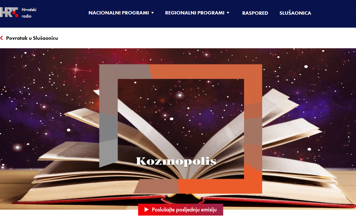 Znanstveno-popularni esej naslova "Asocijacija žena-kuja od antičkog mita do popularne kulture 21. stoljeća" izv. prof. dr. sc. Sabire Hajdarević emitiran je u ponedjeljak (10. ožujka) u radio emisiji "Kozmopolis – književnost u kontekstu" na HRT3. Autorica povlači paralele između antičkih epova i tragedija te suvremenih popularnoglazbenih žanrova rapa i death metala. Riječ je pojmu za ženku psa koji je u metaforičkoj uporabi pogrdni prizvuk dobio već u djelima grčke književnosti, a uvredljivu oštricu (uglavnom) nisu istupila stoljeća koja dijele antiku od suvremenosti, promjena jezične paradigme (u suvremenosti je riječ o anglofonom govornom području), potom prelazak medijske granice (iz književnosti u glazbu), a ni promjena pozicije u kulturnom polju (visoko nasuprot popularnom). Pored uočenih paralela, autorica na relevantnim primjerima istraživanih korpusa pokazuje kontekstualne razlike kao i širu lepezu značenja koji su pojam kuje i s njim povezani pridjevi imali u antici. Snimku emisije možete poslušati ovdje: