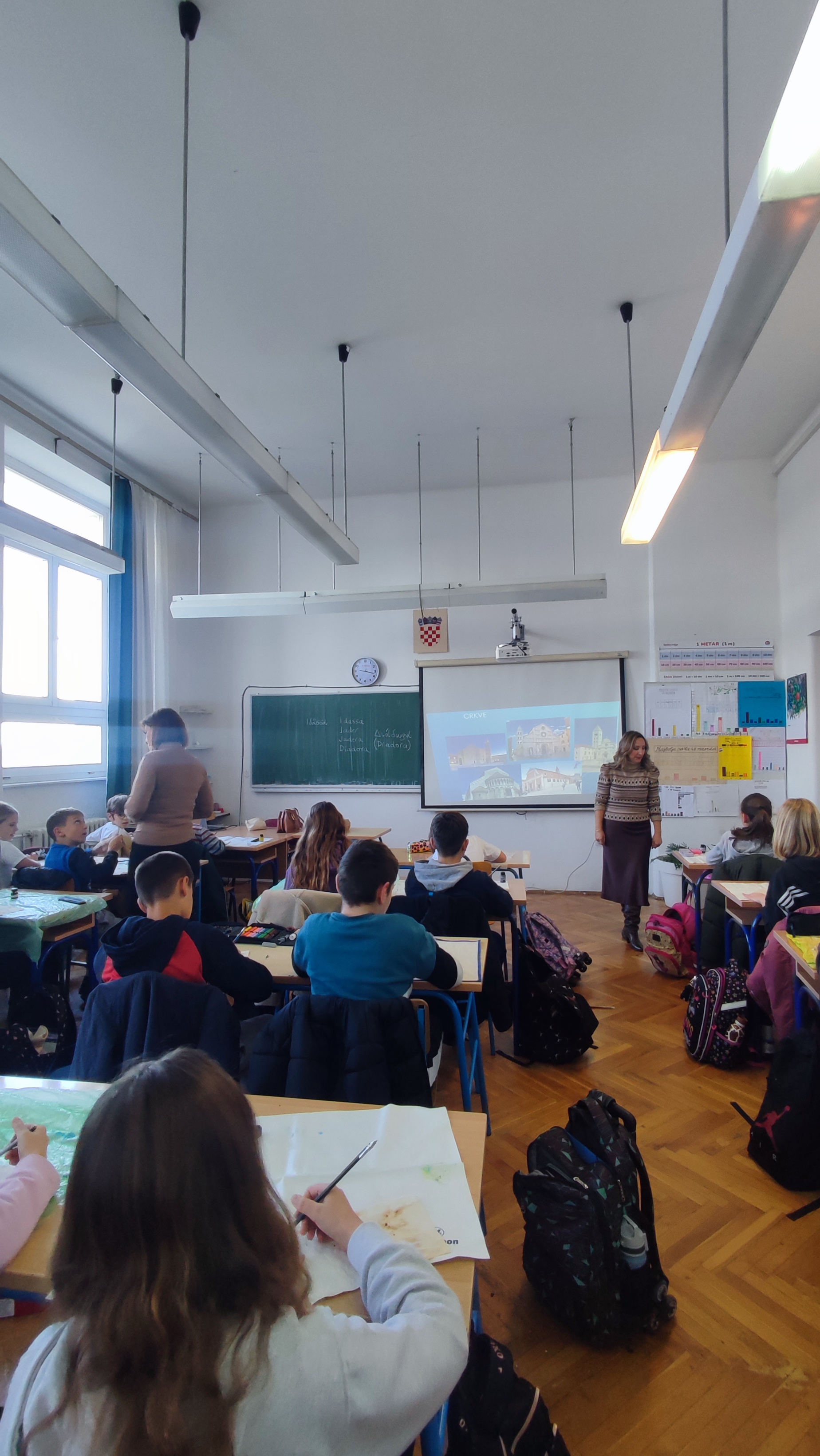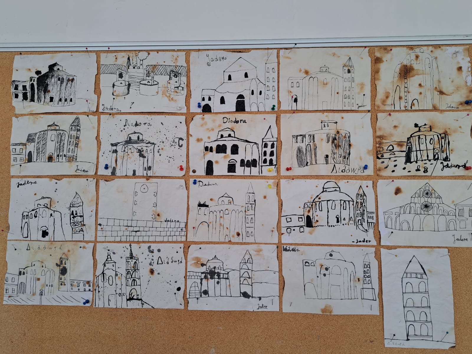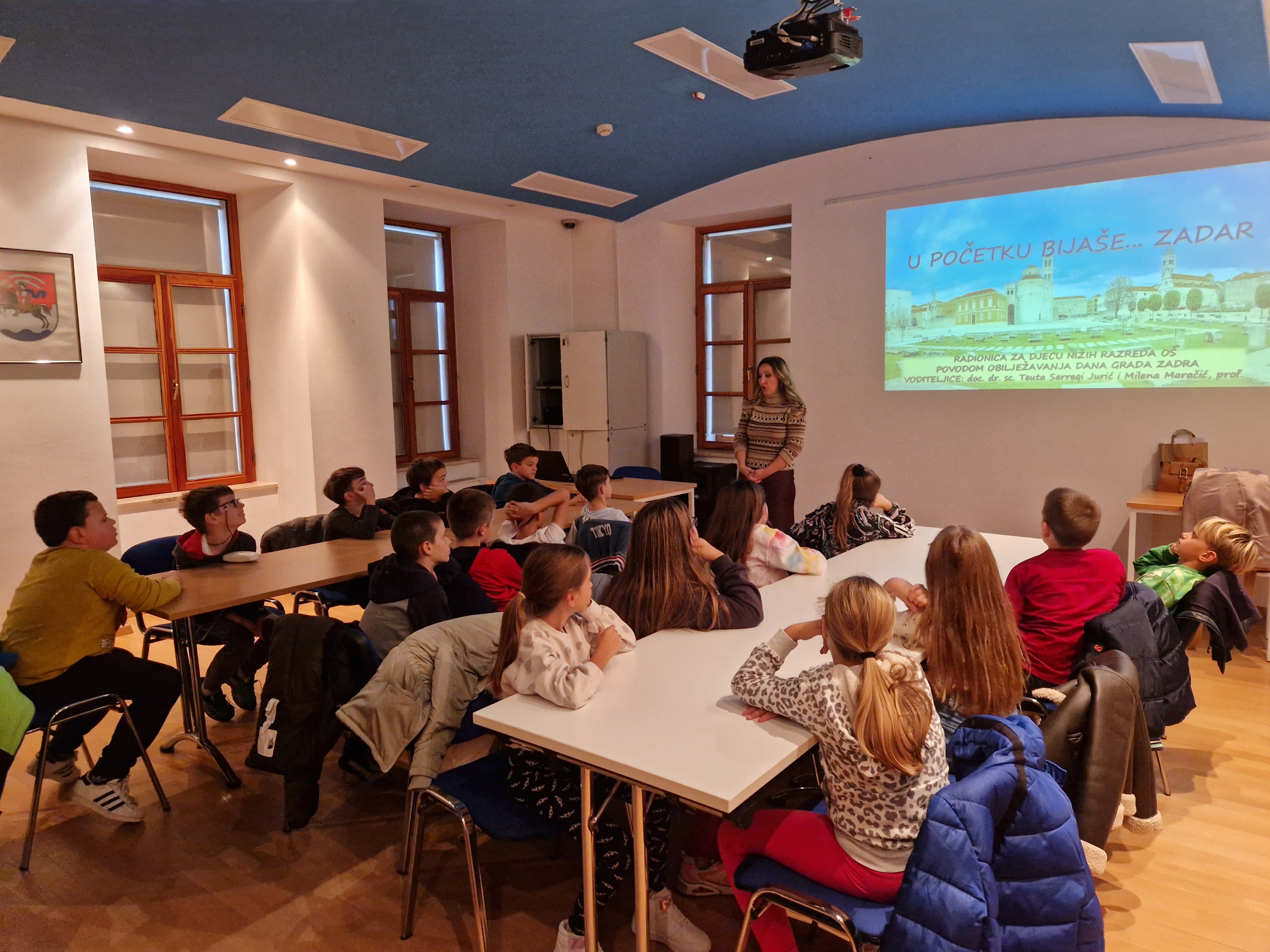 Kroz priču o bizantskom caru Konstantinu VII. Porfirogenetu i njegovu tumačenju imena Zadra od iam erat (u prijevodu "već bijaše") učenici su saznali zanimljive detalje iz najstarije povijesti našeg grada i kako su se mijenjala njegova imena kroz povijest. Nakon priče djeca su na posebno pripremljenim papirima izrađivala stare razglednice Zadra oslikavajući gradske motive.
